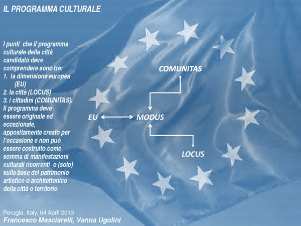La proposta è quindi quella di lavorare partendo da questo concetti di base, dove una rivisitazione dal punto di vista urbanistico e architettonico della città si accompagna a una progettualità culturale, così come previsto dal bando per la candidatura a Capitale europea.