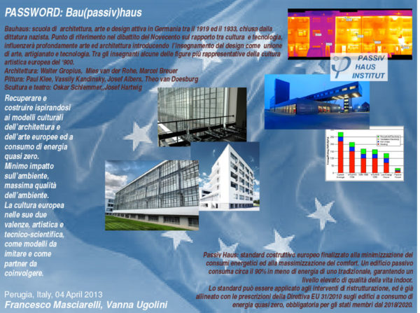 E i luoghi? Come riscrivere i luoghi, con quale criterio riparare le fratture urbane? E’ la stessa Europa a indicarlo: sol-stenibilità. bau passive haus: ricostruire secondo i criteri del recupero energetico, della sostenibilità ambientale.