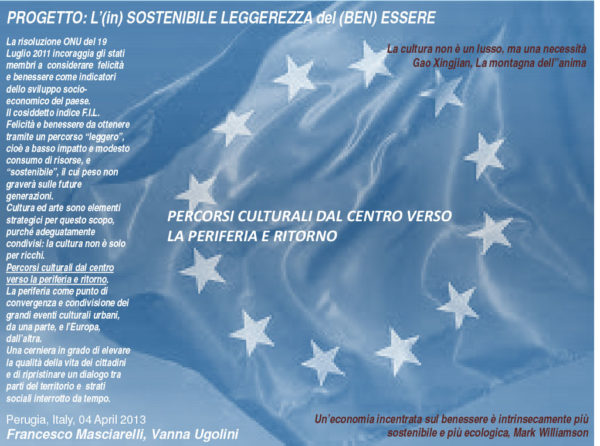 Perugia è tra le città candidate a diventare Capitale della cultura europea per il 2019. A sostegno della candidatura si stanno muovendo non solo le istituzioni, che hanno costituito una fondazione ad hoc per lavorare a questo progetto, ma anche molte “energie libere”, singoli o associazioni che stanno proponendo progetti, ma, soprattutto, metodi condivisi di raccolta di idee e di partecipazione, così come è specificatamente previsto dal bando per la candidatura. Un gruppo di lavoro è nato dietro la proposta di Alessandro Riccini Ricci, direttore di Immaginario festival, sotto la sigla “Il Capitale della Cultura” e ha aggregato una serie di “portatori sani di idee” per contribuire a rafforzare la rosa di progetti da presentare al concorso, ma soprattutto, per far confluire idee e persone nuove, con il loro vissuto e le loro esperienze, all’interno del progetto, con un metodo di partecipazione che parte dal basso.