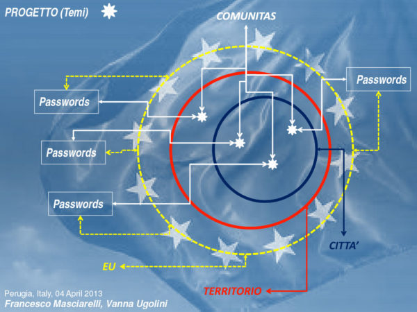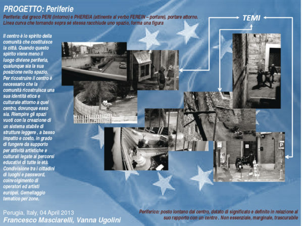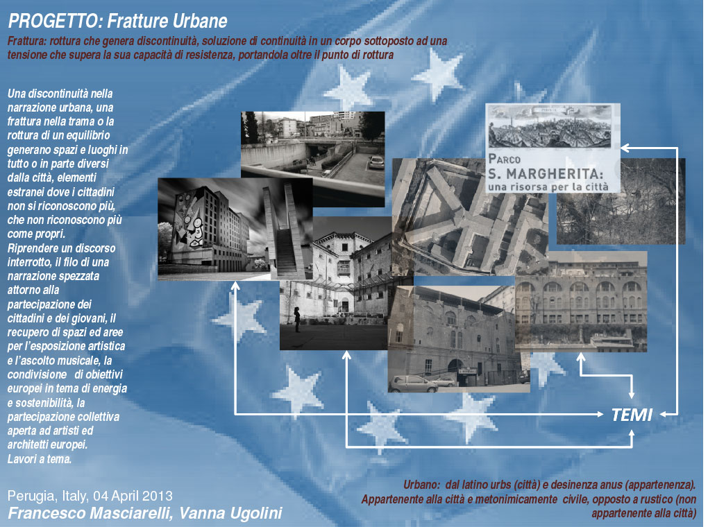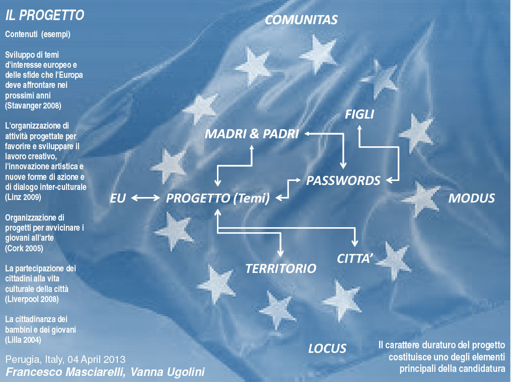 “Ci sono tante storie che raccontano Perugia, tante pagine da leggere con passione. Alcune storie, però, sono racconti a cui sono state strappate pagine, frasi in cui sono state cancellate parole e sostituite con altre: degrado al posto di cultura, insicurezza anzichè solidarietà. Per cominciare a riscrivere le storie spezzate, per cominciare a riconnettere il senso delle frasi, abbiamo cercato delle parole chiave, parole che aprono cammini e riallacciano percorsi interrotti. Ci sono sono tante storie che raccontano Perugia, ma quelle più belle potrebbero essere quelle che non sono ancora state scritte.
